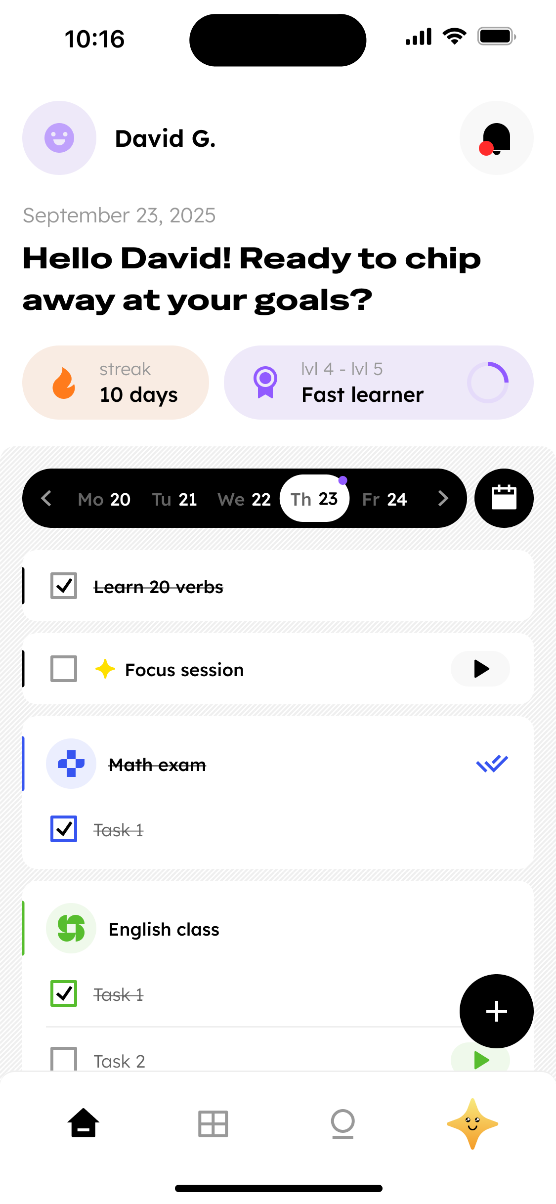 Celebrate every step forward. See your streaks, track your wins, and feel good about what you've accomplished—no matter how small.